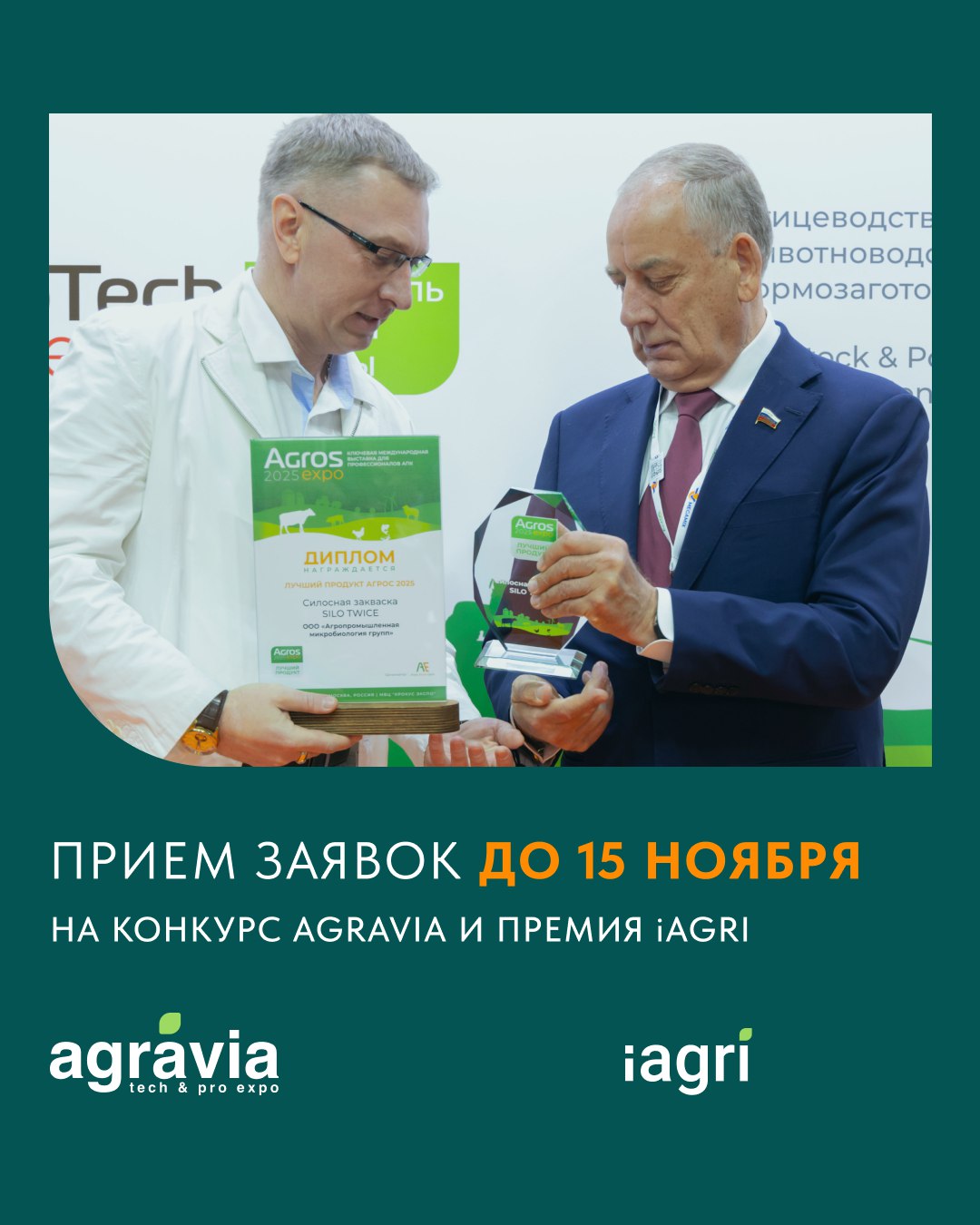 Награждение победителей пройдет в торжественной обстановке в день открытия выставок AGRAVIA и iAGRI - 21 января 2026.